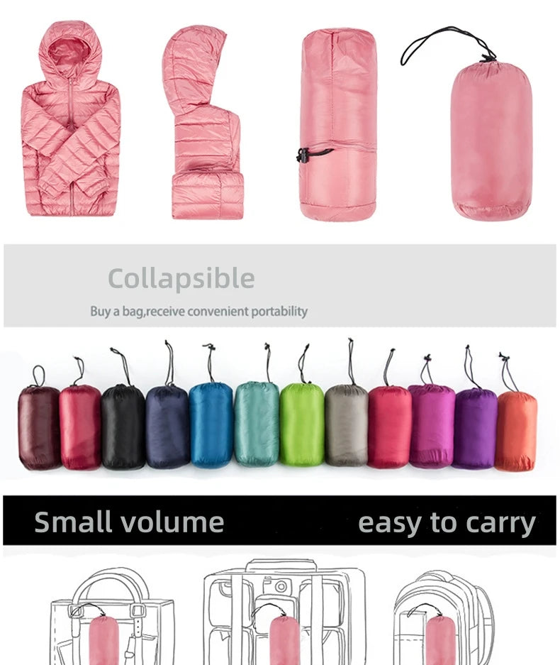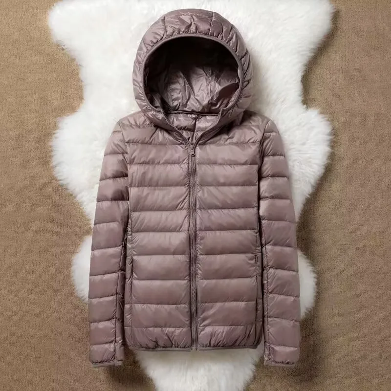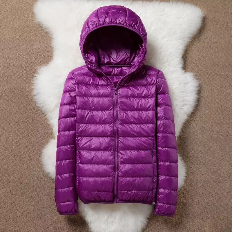 Hoody Duck Down Jacket Women Fashion Puffer Coat Autumn Zipper Ultra Light Warm Coat Female Out Portable Down Jacket Winter